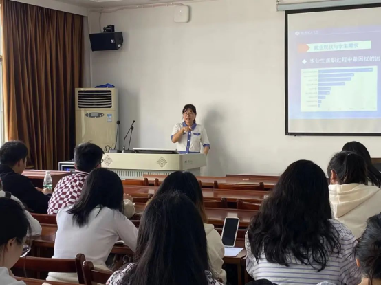 会上,单芳老师围绕去年毕业生就业形势和就业去向作了简要的介绍,阐明了应届毕业生的就业黄金阶段,为毕业生面临就业的需要做出求职要求。同时,单芳老师强调,班委必须切实观察记录班上同学的就业情况、进度以及就业心态,及时提醒同学们参加企业招聘宣讲会和校园招聘,自我调节和化解好就业压力,从思想上、行动上开始做就业准备,明确好自身定位,做好职业生涯规划。