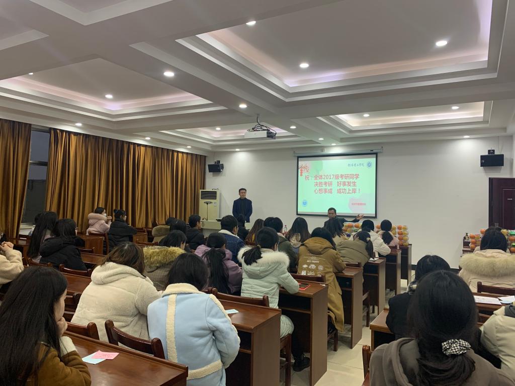 12月23日下午4:00,365best体育官网登录举行了2021年全国研究生入学考试考前动员大会,为2017级146位备考研研究生入学考试的全体同学加油鼓舞。