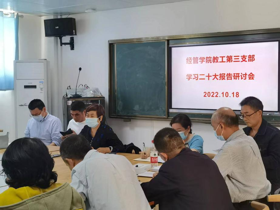 10月18日下午,365best体育官网登录国贸金融教研室、行政财会教研室、旅游人力教研室教师围绕党的二十大报告,分享个人学习心得。会上,老师们纷纷畅谈学习习近平总书记重要讲话精神的体会和感悟,表示要牢记为党育人、为国育才使命,紧紧围绕立德树人根本任务,着力在创新教学形式、提高课堂效果等方面下功夫,为加快建设教育强国、科技强国、人才强国贡献力量。