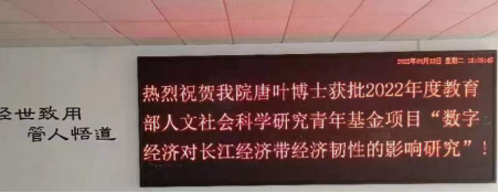 9月22日,教育部社科司公布了2022年度教育部人文社会科学研究一般项目名单,公司唐叶博士申报的“数字经济对长江经济带经济韧性的影响研究”课题获人文社会科学研究青年基金一般项目立项。
