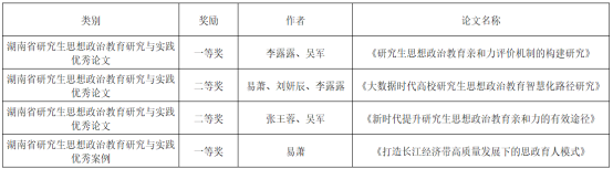近日,湖南省思想政治论文和案例竞赛获奖名单揭晓,湖南理工365best体育官网登录再创佳绩,获得多项殊荣。此次竞赛中,研究生李露露、吴军同学凭借两篇论文分别荣获一等奖和二等奖;刘妍辰、张王蓉同学荣获思想政治教育研究与实践优秀论文二等奖;此外,易萧老师荣获优秀论文二等奖,并且其优秀案例《打造长江经济带高质量发展下的思政育人模式》荣获一等奖。具体获奖情况如下: