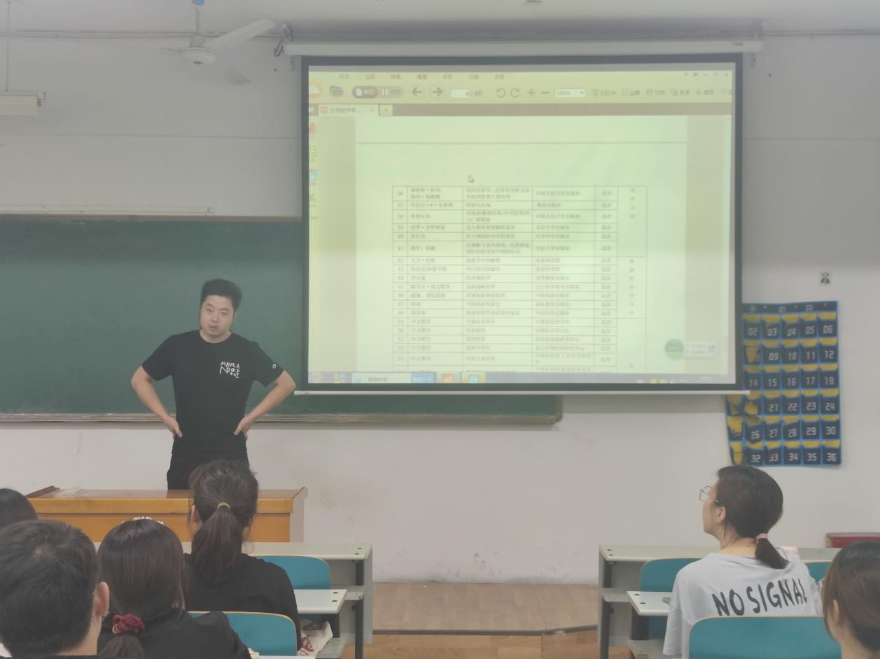 首先,蒯老师欢迎各位研究生新生的到来,随后便直入主题,详细介绍了应用经济学一级硕士公司产品方案,从学科特色到活动实践,甚至包括辅修课程和书籍,让同学们对新的专业有了更加深刻的认识和明确的目标。