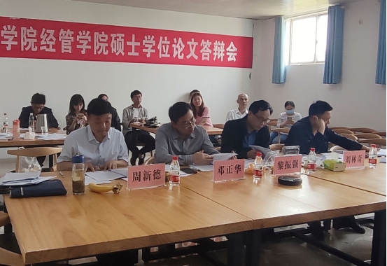 2022年5月21日,365best体育官网登录在8栋613和113教室举行2022届应用经济学研究生硕士学位论文答辩会。本次答辩会以线上线下相结合的方式开展,应用经济学9名硕士研究生分为两组进行答辩。答辩委员会由10位校内外专家组成,分别邀请了湖南工商大学经济与贸易发展研究院经理柳思维教授、湖南师范大学商公司副经理曹虹剑教授担任答辩委员会主席,邀请了周金城教授、黎振强教授、曾玉林教授、周新德教授、刘林奇教授、陈灿煌教授、邓正华副教授、李毅副教授担任两组答辩委员会成员。2020级和2021级应用经济学研究生现场观摩了答辩会。