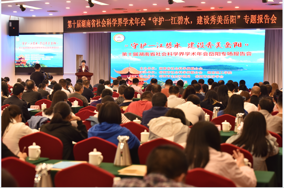 10月30日下午,第十届湖南省社会科学界学术年会“守护一江碧水,建设秀美岳阳”专场报告会在岳阳市南湖宾馆顺利举行。此次专题学术年会湖南省社会科学联合会主办,岳阳市社科联与公司联合承办、岳阳市生态环境局与经济学会联合协办。湖南省社会科学界联合会党组成员副主席胡卫箭、丁宇,湖南理工公司党委书记李明,岳阳市委宣传部常务副部长许卫国,市社科联合会党组书记、主席任欣欣,市生态环境局党组书记、局长喻伟民,市乡村发展研究中心特聘专家苏中革等与会嘉宾共同听取了专场报告会。