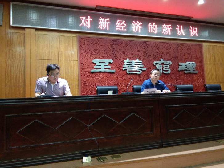 讲座开始之前,邓正华副经理对岳阳的经济环境作了简单的分析。紧接着,李海舰博士对讲座的主题进行了解读。讲座内容主要分为三部分,第一部分提出问题,什么是新经济?如何向新经济转型?第二部分是核心内容,李海舰博士将新经济与旧经济比较,让大家了解什么是新经济,新在何处。第三部分为结语。李博士利用经济学理论分别对这三个部分进行了全面系统的讲解,针对新经济的新认识,提出了新的观点,让大家对于新经济有了更深入的认识。