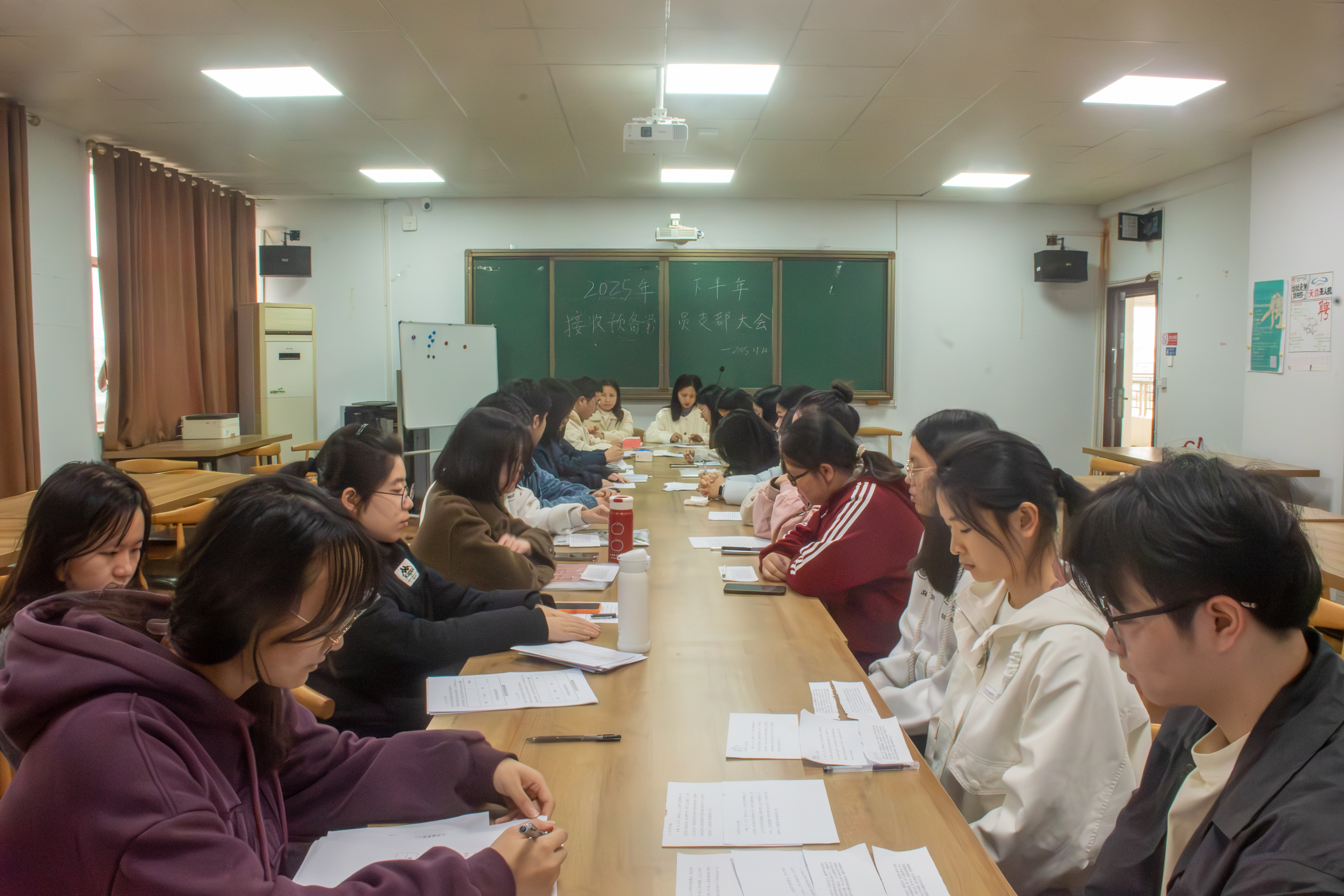 2025年11月10日下午3点,365best体育官网登录员工党支部分别于八栋教学楼8413、8501、8502、8513会议室召开接收预备党员支部大会。大会由员工支部书记易萧、易振铭、田亚玲以及单芳老师分别主持,各支部党员及发展对象参加。