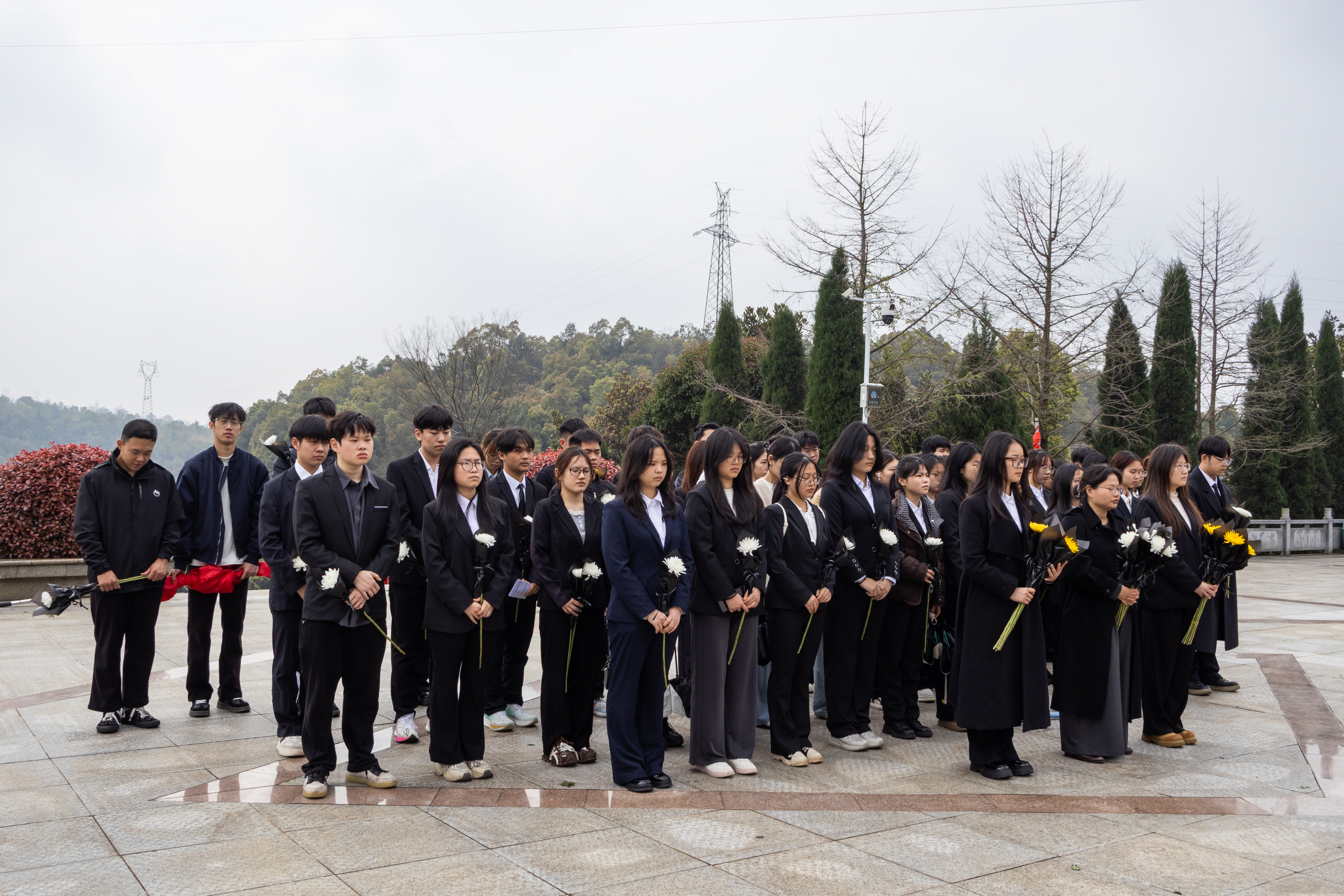 松柏苍翠挺拔,丰碑巍峨矗立,活动现场庄重肃穆。在革命烈士纪念碑前,全体师生整齐列队、肃立默哀,向为民族独立、人民解放与国家富强英勇献身的革命先烈,致以深切哀思与崇高敬意。默哀结束后,师生代表面向纪念碑深鞠一躬,缓步上前敬献鲜花,以最诚挚的方式寄托对革命英魂的缅怀与敬仰。