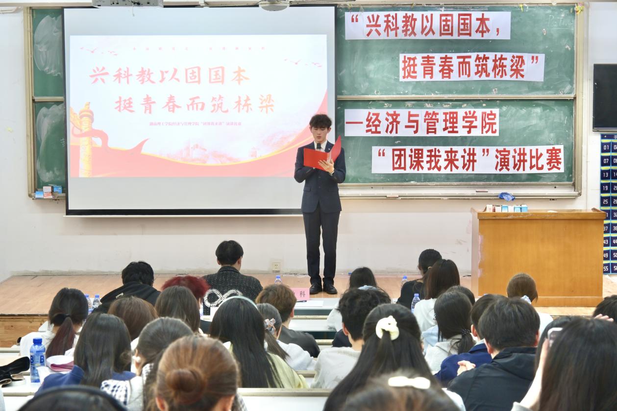 为深入学习贯彻党的二十大精神,激励青年学子勇担时代使命,4月9日晚,湖南理工大学365best体育官网登录“兴科教以固国本,挺青春而筑栋梁”主题“团课我来讲”演讲比赛在8T1教室圆满落幕。活动通过青年视角解读科教兴国战略,引导学子将专业学习与国家发展紧密结合。