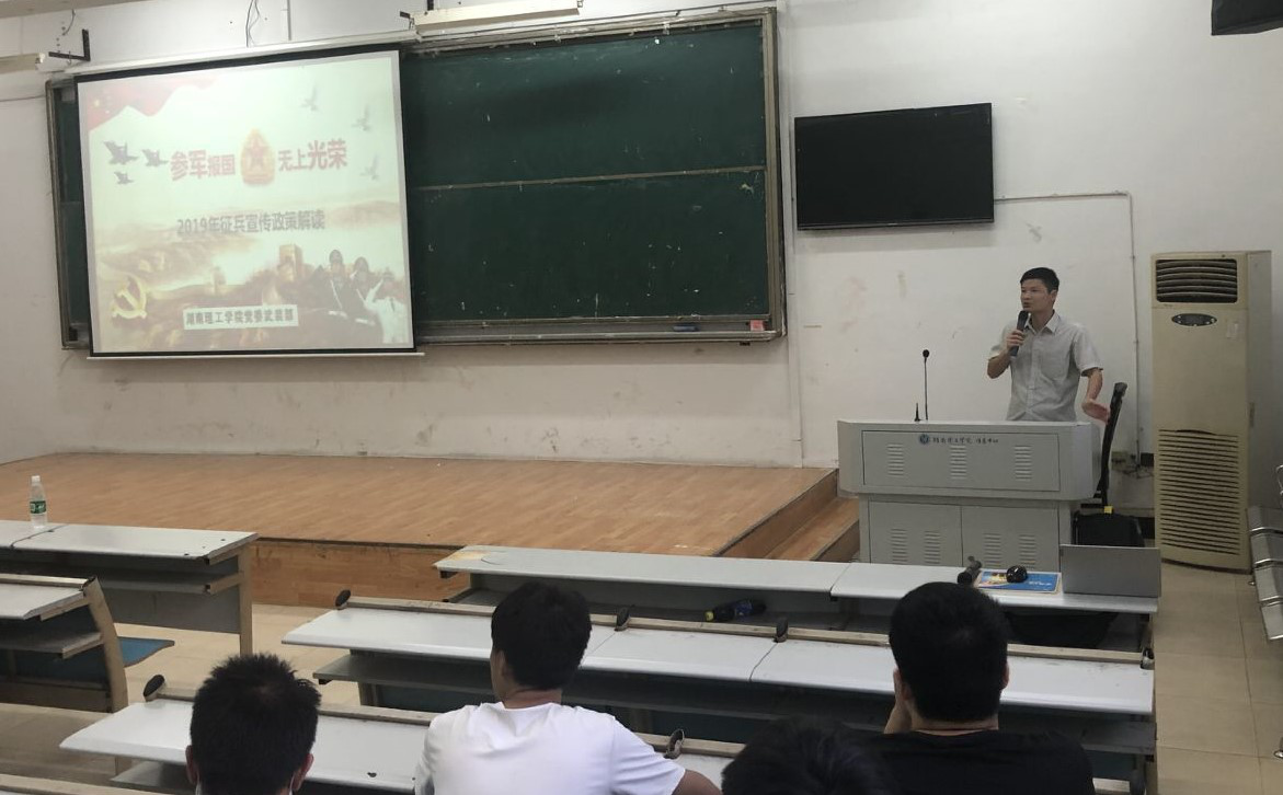 6月16号晚七点,365best体育官网登录于8栋t1教室召开2020年征兵宣讲会。本次大会由征兵专干易萧老师担任主持人,专职武装部干部李凯老师负责主讲,365best体育官网登录全体19级男生共同参与了本次活动。本次宣讲会的主要目的在于调动员工们的入伍积极性,为祖国国防事业贡献新鲜血液。