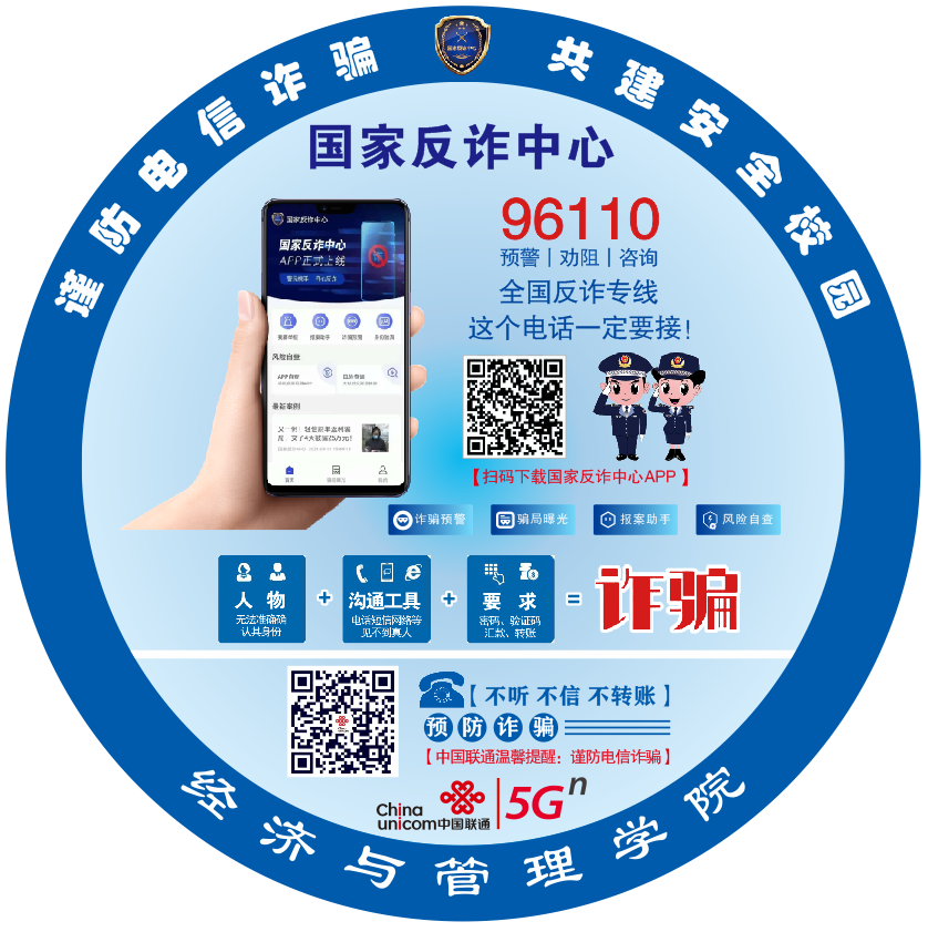 本次活动中,经济与管理公司团委对全院寝室进行安全排查及安全教育,同时在各寝室门口张贴反诈骗宣传海报,耐心为同学们讲解防诈骗知识,描述诈骗的形式和常用手段同时就近来发生的电信诈骗案件给公司员工讲解,让同学们充分认识到新型电信诈骗犯罪的严重危害性,熟知了比如网游交易诈骗、虚假色情服务、虚假购物消费诈骗、冒充QQ微信熟人诈骗、等二十几种常见的电信诈骗犯罪手段。同时提醒同学们不要贪图小利,面对诈骗时保持冷静和理智,采取正确处理方式,及时通知老师或拨打8640110。