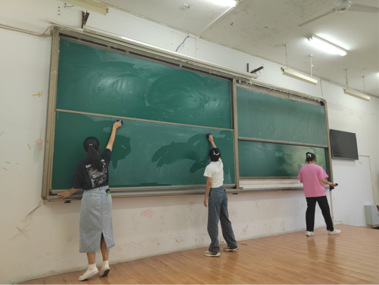 此次活动主要对8 号教学楼教室及走廊、图书馆周边公共区域、12 栋员工宿舍楼内外区域、阳光草坪等进行全方位无死角的大扫除。在清扫过程中,同学们分工明确,各司其职,互相配合,热情洋溢的投入到其中。教室、走廊、草坪的纸屑、塑料袋等各种垃圾纷纷被清扫一空,卫生死角的杂物被彻底清除。