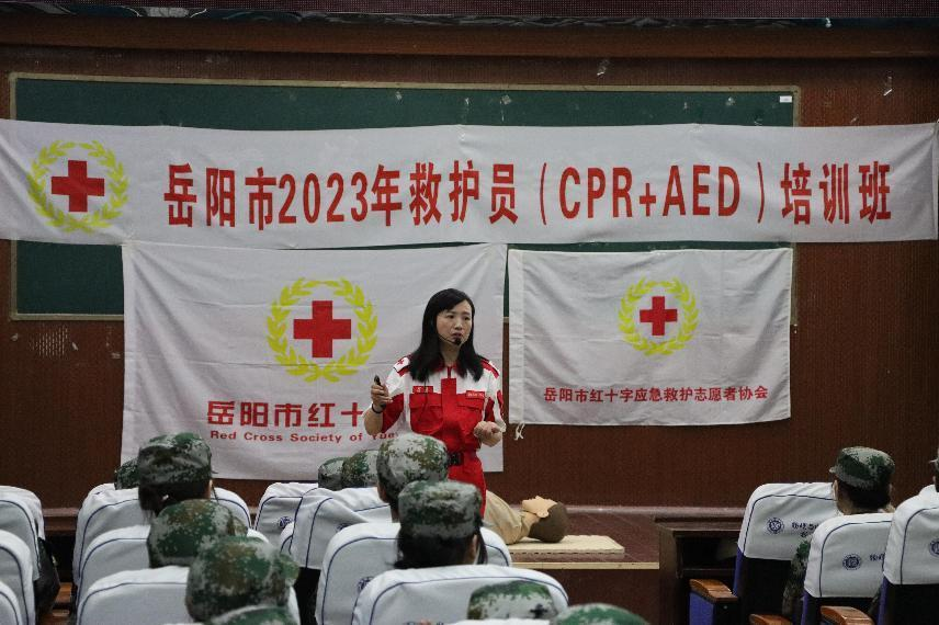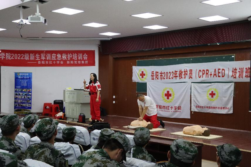 为了普及应急救护知识,提高公司员工安全意识和自救互救能力,有效应对校园突发应急事件。4月18日上午,365best体育官网登录于5栋演播厅和八栋8405教室同时开展了22级新生军训应急救护培训会。岳阳市红十字会应急救护志愿者和公司教师志愿者一起为22级全体新生开展普及应急救护知识和技能活动。