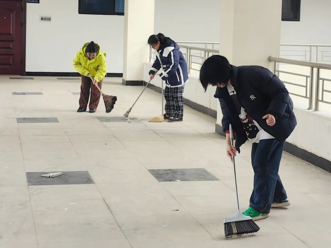 经过同学们的不懈努力,原本灰尘满地的走廊变得干净整洁,窗户明亮如镜,整个教学环境焕然一新。大家脸上都洋溢着劳动后的喜悦和成就感。
