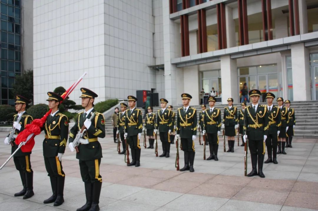早晨 7 时,国旗护卫队队员身着戎装,迈着铿锵有力的步伐,护送国旗向着国旗台稳步前行,国歌奏响,众人伫立,心潮随旋律澎湃,敬意伴歌声升华。