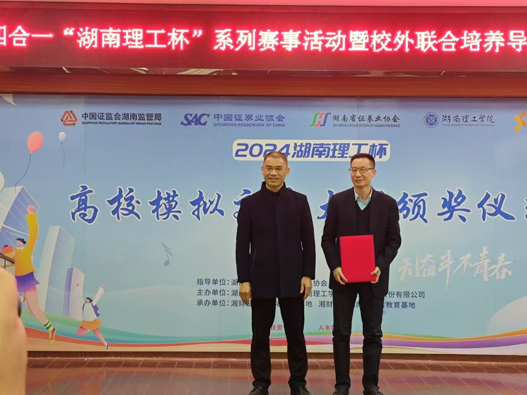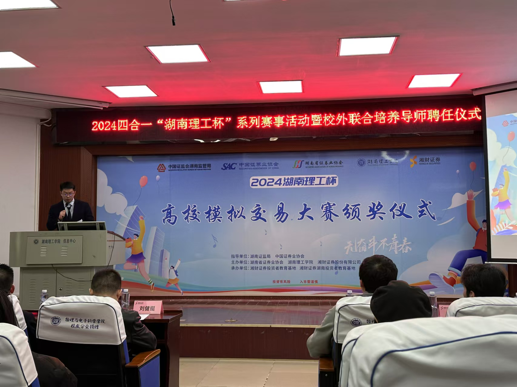 为深入推进投资者教育纳入国民教育体系实践,提升老员工的金融素养,助力资本市场高质量发展,2024年12月4日16:00,公司于6栋教学楼6t1教室开展了四合一“湖南理工杯”系列赛事活动暨校外联合培养导师聘任仪式。