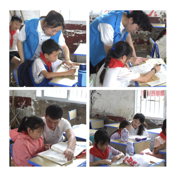 7月7日,“七彩筑梦师”留守儿童帮扶团为石潭坝中心小学员工开展了全科辅导作业、“湖湘红色”大课堂、“安全自护”课堂和“心灵关爱”课堂等活动。团队成员们了解了小朋友们的学习情况、心理状况、生活需求等,耐心倾听他们的心声和遇到的困难,鼓励他们积极面对困难。“湖湘红色”大课堂通过巧妙结合视频、素描画、剪纸画等形式为留守儿童普及红色知识,增强孩子们对湖湘红色文化的了解,厚植家国情怀;队员们以“我的身体我做主”为主题开展的“安全自护”课堂,采用知识问答等多种形式,帮助孩子们认识自己的身体,学会保护自己;“心灵关爱”课堂通过“相亲相爱一家人”“五人四纸”“你动我猜”等心理团辅活动教授孩子们心理知识,缓解和矫正留守儿童因亲子关系、校园霸凌等引起的消极情绪与不良行为。