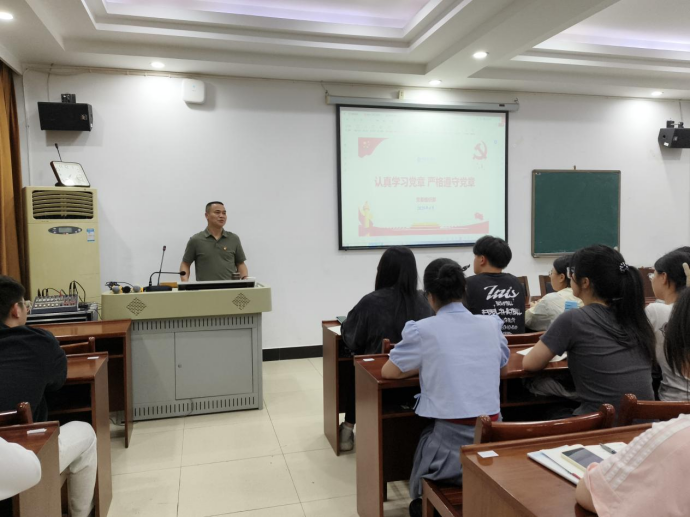 胡文静教授以《认真学习党章,严格遵守党章》为题,从党章概述、百年演变、条文解读、贯彻党章四个方面叙述学习党章,遵守党章的重要性。