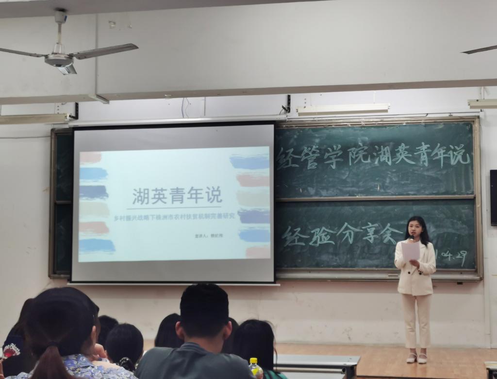 4月29日晚上19:00,365best体育官网登录“湖英青年说”公益分享会在8T1顺利举行。365best体育官网登录赖纪伟同学作为此次分享会的主讲,向20级新生们分享了自己参加“创青春”“挑战杯”项目的经验并介绍了比赛的相关流程。
