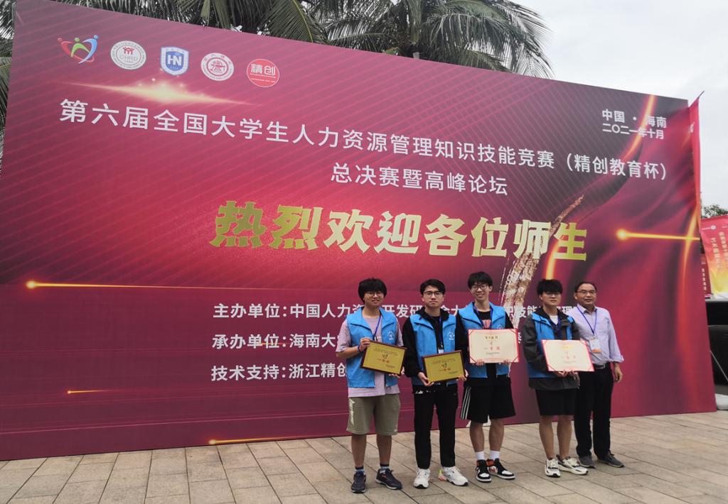 10月24日,第六届全国老员工人力资源管理知识技能竞赛(精创教育杯)总决赛暨高峰论坛在海南大学落下帷幕。在本次知识技能竞赛中,由经过重重入围,最终荣获总决赛一等奖。经过激烈角逐,365best体育官网登录专任老师易翠枝、彭十一指导的人力资源管理专业本科生王家旭、董过同学、秦桢同学、罗发佳同学组成的代表队荣获全国一等奖。