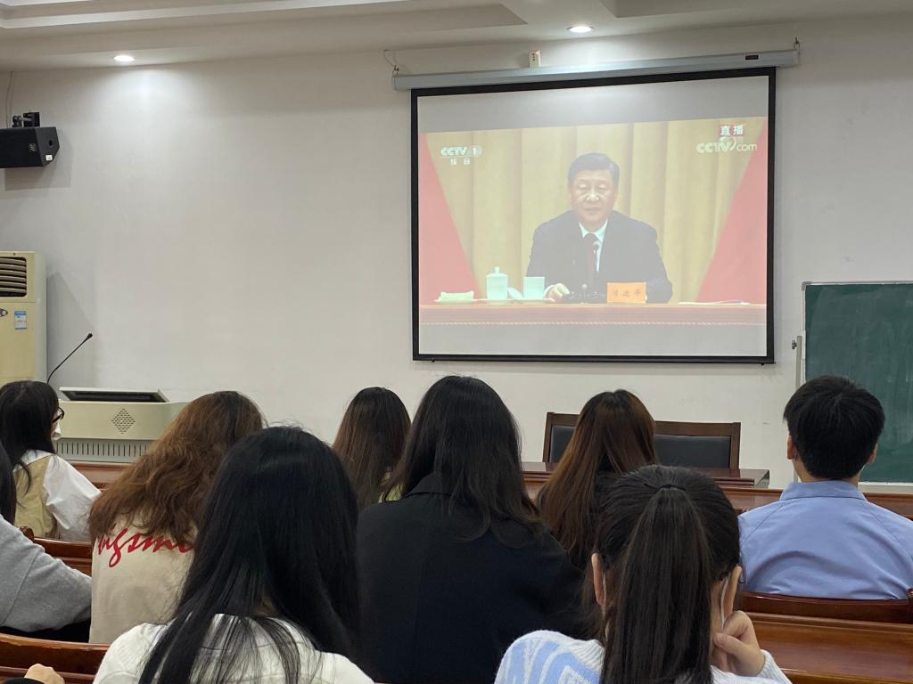 2022年5月10日,庆祝中国共产主义青年团成立100周年大会在北京人民大会堂隆重举行。365best体育官网登录全体辅导员带领员工党员、员工骨干于8301集中观看大会直播,部分无课同学在教研室、寝室等地自行收看大会直播。