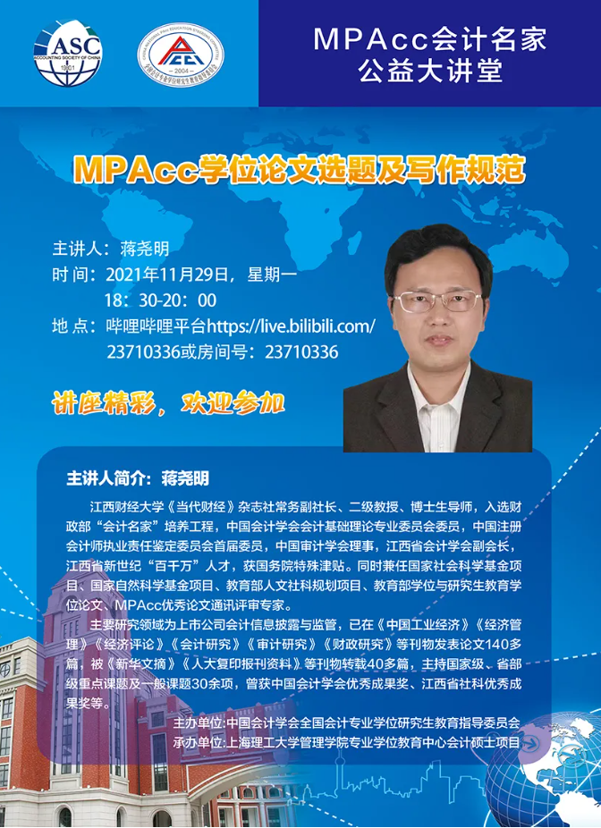 11月29日晚上,财政部会计名家蒋尧明教授通过腾讯会议主讲公益讲座,
