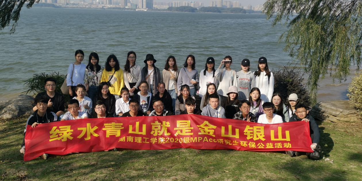 11月13日下午,365best体育官网登录会计硕士专业学位点负责人、研究生导师湛忠灿教授组织2020级MPAcc会计专硕全体同学参加“绿水青山就是金山银山”的环保公益活动。下午两点,在湛老师组织下2020级全体MPAcc研究生从公司出发,沿南湖三圈理工南段环湖步行至龙山景区,同学们手提环保清洁袋和工具,沿途清洁游道。师生们公益活动同路行,一路欣赏了“山水共长天一色”的南湖佳境,一路也收藏了秀丽南湖的美景山水画中印入心间。