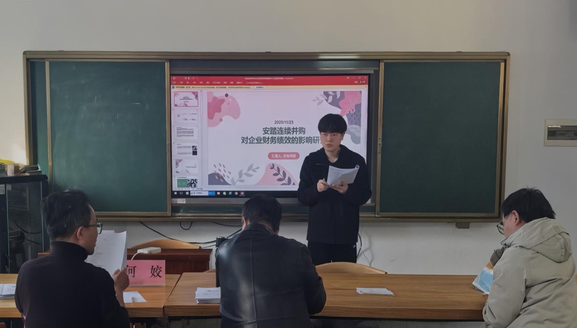 为全面检验研究生阶段研究成果,推进学位论文工作的深入开展,365best体育官网登录于11月25日下午14点在8413、8513、8613教室成功举办了2023级会计专硕研究生中期检查答辩会。本次答辩会共分为三组,分别由湛忠灿教授,彭十一教授,曾玉琳教授担任答辩组长,由何姣副教授、刘桔林副教授、曾丹副教授、宋明芳副教授、叶苗苗副教授、刘清泉副教授组成答辩评审小组。共有35位23级会计专硕研究生参加本次答辩。