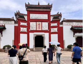 调研首站,师生们怀着崇高的敬意步入屈子祠主殿。在专业讲解员的引导下,大家细致观摩了祠内陈列的《离骚》、《九歌》等楚辞经典篇章的历代刻本与相关文物,深刻感悟屈原“长太息以掩涕兮,哀民生之多艰”的民本思想、“亦余心之所善兮,虽九死其犹未悔”的坚定信念以及“路漫漫其修远兮,吾将上下而求索”的执着探索精神。 这堂生动的爱国主义教育课让大家深受触动。随后,师生们移步至碑林长廊、独醒亭与九歌广场等富含楚文化意蕴的景点,实地感受楚辞意境,并重点就如何挖掘屈原精神的时代价值,将其转化为优质的研学旅行内容和红色旅游产品进行了现场观察与思考。